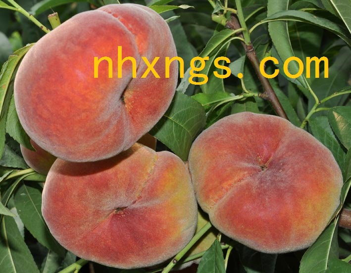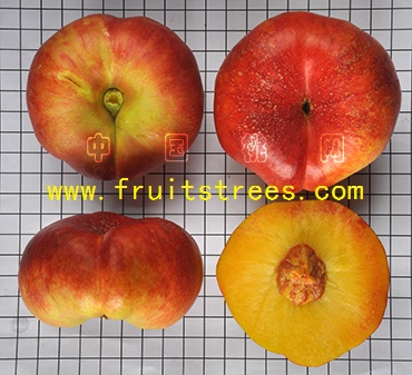 外观:果实扁平形,果顶微凹,缝合线浅,果皮底色黄色,成熟时果面着红色霞晕。