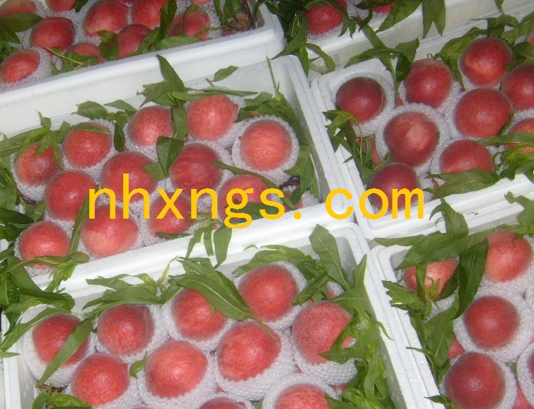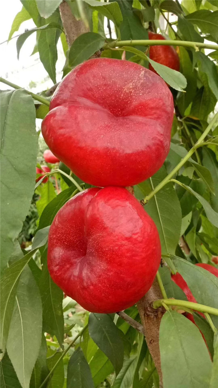 国庆红桃9月上旬果实成熟,果实巨大,平顶端正,颜色鲜艳浓红,单果重300-1000克,白肉粘核,果肉脆甜,口感极佳