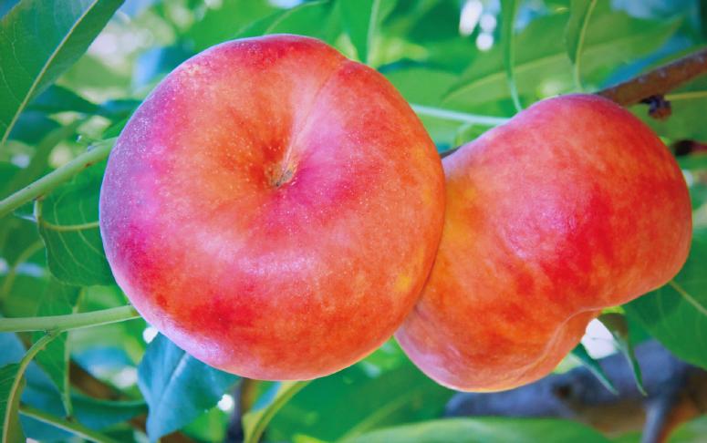 中蟠13号—黄肉蟠桃,7月上旬成熟,果皮75%着红色、茸毛短、干净、漂亮,似水洗一般,果实大、均匀,果顶平、果肉厚、细腻、不撕皮,单果重180克,风味浓甜、香,极丰产,综合性状很好,适宜规模化发展。